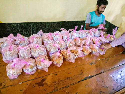Asha Vihar is now not only distributing care packages to the needy in the villages, but also, since May 10, finished meals to a quarantine station 25 km away. Many migrant workers who were previously stuck in other states, far from home, are now allowed to return home with specially designed transports. However, they must first be in quarantine for 14 days. Up to 100 people in this station now have to be provided with food every day. Asha Vihar decided to help here too. We prepare the meals in Asha Vihar and then take them to the mostly exhausted homecomers.